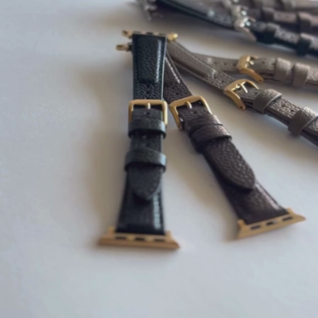 シンプルで大人なレザー製アップルウォッチバンド(ゴールド金具)