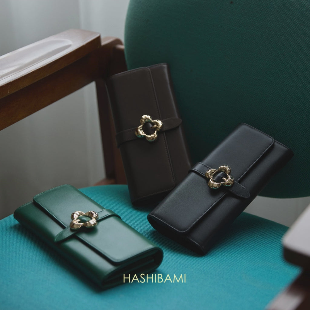 《予約商品》HASHIBAMI【Ha-2509-605 フラワーバックル ロングウォレット】ボトルグリーン