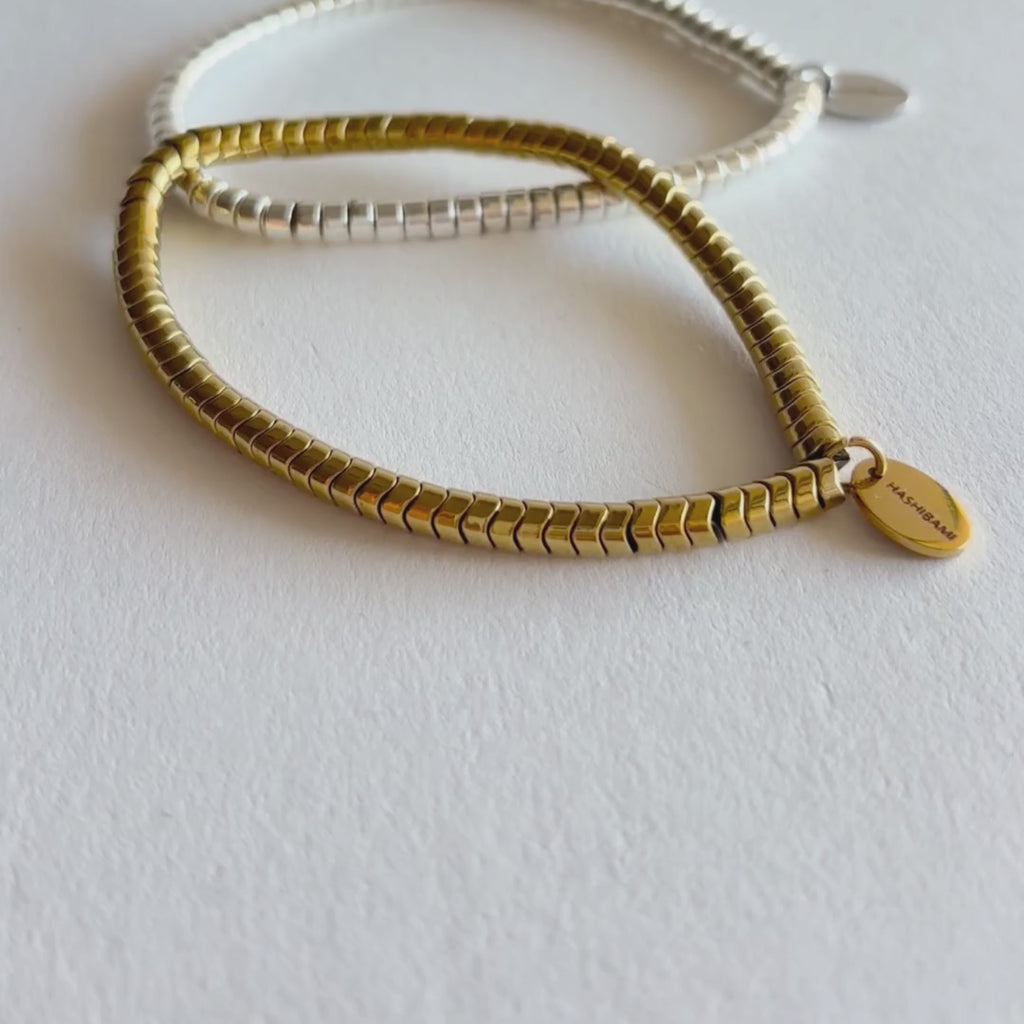 伸縮性があるタイプのブレスレットで、手首周りのサイズを気にすることなくお使いいただけます。